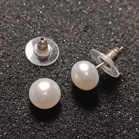 Hopea-leimatut nappikorvikset. Vaaleansiniset kivet ovat muhkeat 7x7mm kokoiset