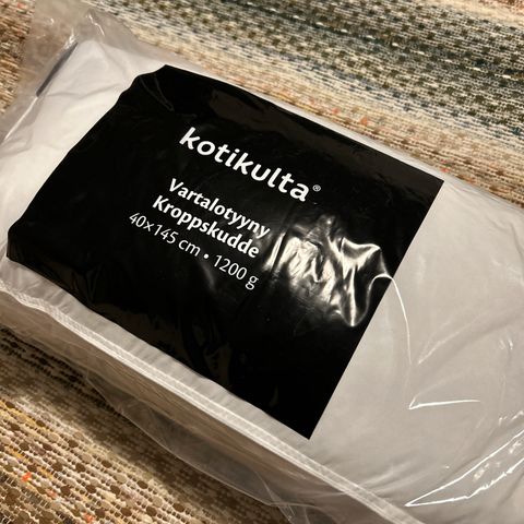 Jättikokoinen vartalotyyny, mitat 140x85cm. Kaikinpuolin hyväkuntoinen, ehyt ja siisti. Päällinen irroitettavissa. Tyyny auttaa löytämään helpommin rentouttavan asennon nukkuessa ja levätessä. Tyynyn sisällä voi myös istua esim TV:tä katsoessa ja se muodostaa kuin turvallisen pesän ympärille. Suositellaan esimerkiksi niille, jotka kärsivät kivuista eri puolilla vartaloa. Erinomainen myös raskaana oleville ja imettäville. Vauvan saa tuetusti syliin tyynyn avulla. Kylässä ollut 5v lapsi valitsi heti tämän tyynyn nukkumapaikakseen ja meni mielellään petiin tyynyn ”sisälle”. Myydään tilanpuutteen vuoksi. Taloudessa ei sisäilmaongelmia, ei hajusteita, ei eläimiä eikä tupakointia.