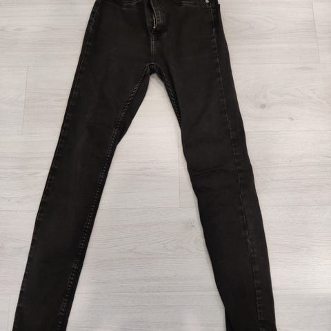 Käytetyt, mutta hyvässä kunnossa olevat matalavyötäröiset farkut kokoa S. Lahkeissa vetoketju. Pientä käytönjälkeä saattaa löytyä.