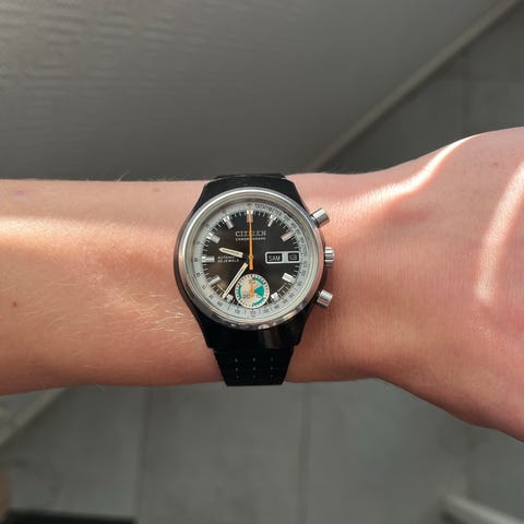 Kyseessä RAF Red Arrows -yhteistyömalli, jossa chronograph + world time.