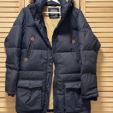 Paksu ja lämmin Race Marine untuvatakki kunnon pakkasille, täyte 80% untuvaa ja 20% höyheniä. Koko 38. Väri harmaaseen ja khakiin taittava ruskea. Siisti, ehjä kunto. Hupussa on napit irrotettavalle karvakaulukselle, yritän etsiä vielä löydänkö mukaan.
