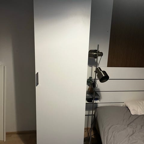 Myydään syksyllä ostettu Jyskin valkoinen vaatekaappi, toisella puolella tanko henkareita varten ja toisella puolella hyllyt. Sisältää myös erillisen ylähyllyn.