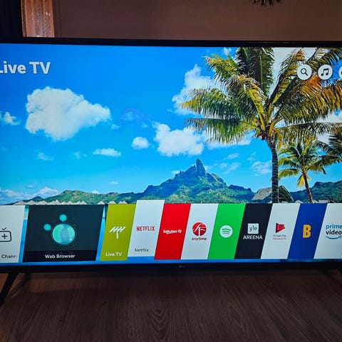the tv works extremely well and comes with magic remote control and power plug. it has a very high quality image and sound