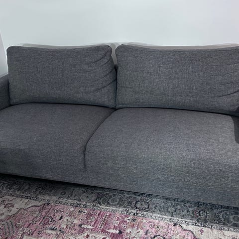 Hakusanat: tyylikäs, sisustus, olohuone, moderni, kangas, harmaa, huonekalu, huonekalut, hyväkuntoinen, Valmistaja, mukava, käytetyt huonekalut, yksinkertainen, sohva, linjakas, sohvat, kuluma, istuin, neutraali