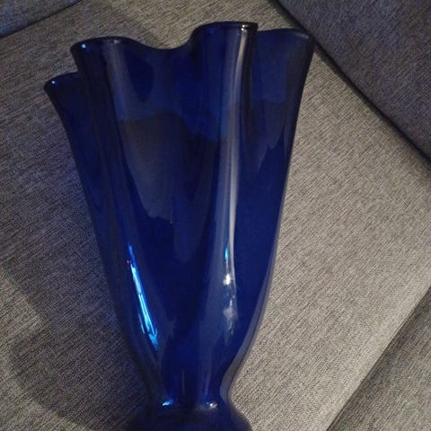 Iso sininen lasimaljakko kulmikas