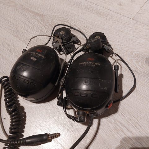 Rehellisessä työkäytössä olleet peltorammarit. Kivikautinen tekniikka, eli AUX-paikka ja radio löytyvät näistä, ei bluetoothia.