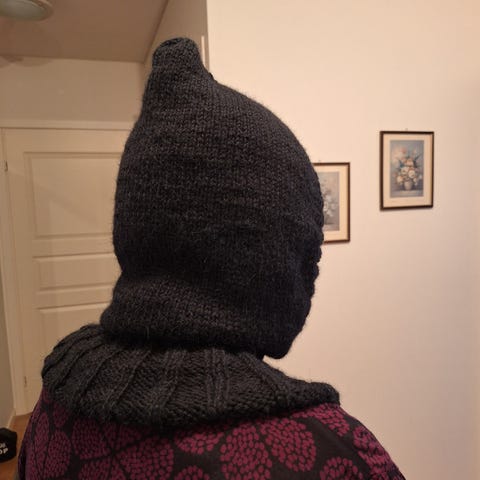 Muhkea huppuhuivi. Käsin neulottu.Sophie Hood -Mallilla. Lankana Sanders Garn Alpakka Ull.