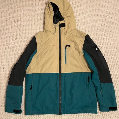 Laadukas, hyväkuntoinen Colourwear CLWR laskettelu-/lumilautailutakki. Miesten koko M, ollut junnulla 168cm käytössä. Teknisiä yksityiskohtia, tumma maastokuviointi (näyttää kuvassa vaaleammalta). Hihansuissa pientä kulumaa. Vas. kainalon alla pieni vekki, ei vaikuta käyttöön. Nouto Lauttasaaresta. 45 eur.