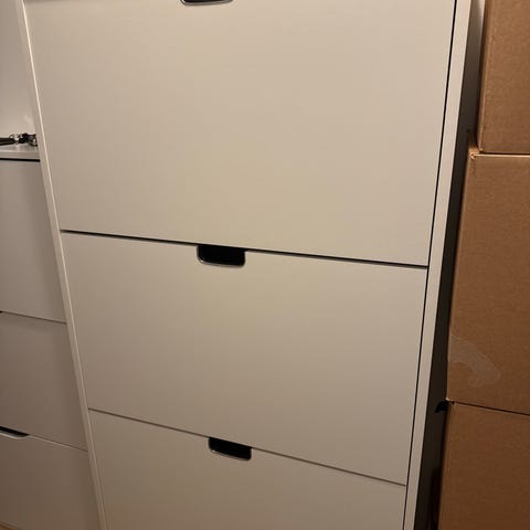 Vepsäläiseltä ostettu laadukas kenkäkaappi. Ei tarvitse kiinnittää seinää. Ostettu 2019, muistaakseni joku italiainen design