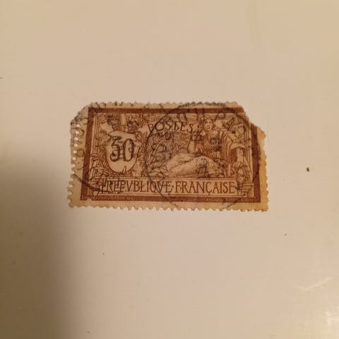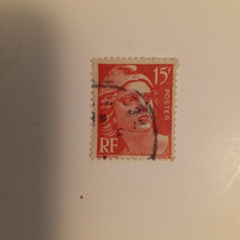 Kuvan mukainen hyväkuntoinen ranskalainen postimerkki vuodelta 1945.Postitus onnistuu rahat tilillä kirje postilaatikkoon tyylillä.