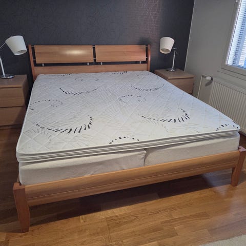 Ikean brimnes sänky missä kaksi vetolaatikkoa. Patjat mukaan. Hyvässä kunnossa, vain pieniä naarmuja