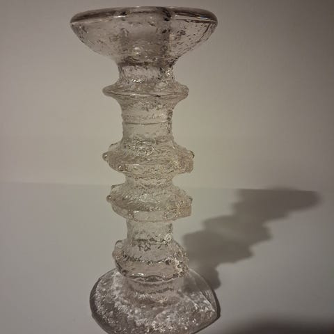 Iittala Festivo kynttilänjalka, valmistettu kirkkaasta lasista. Korkeus 120 mm. Sopii koristeeksi ja käytettäväksi kynttilöiden kanssa.