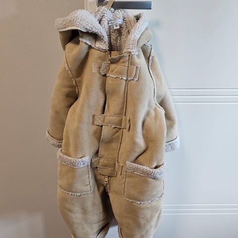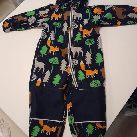 Ciraf merkkinen haalari karvavuorella ja hupulla. Hupussa korvat. Lahkeet ja hihansuut saa käännettyä "pussiksi", joten villasukkia ja lapasia ei välttämättä tarvitse. Päällikangas hieman nyppyyntynyt, mutta muuten hyväkuntoinen. Hieman reiluhkoa mitoitusta. Koiratalous.