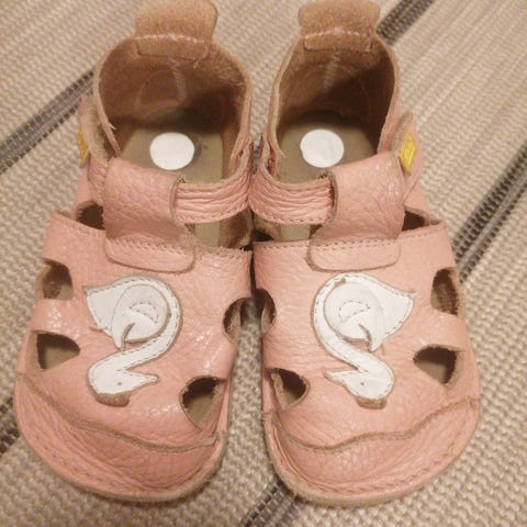 Tikki Nido sandaalit koossa 23. Vähän raffin näköiset, mutta vielä toimivat. Kengän kärjestä nahka kulunut käytössä, mutta ei reikiä, pohjat ok kunnossa ja tarrat toimivat.