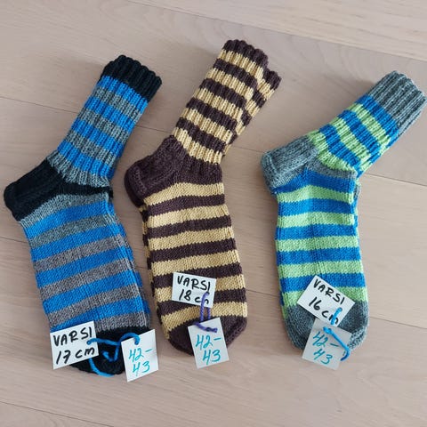 Käsinneulotut villasukat, koko 42 (lapa 28cm).