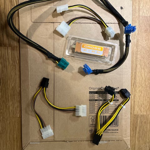 10kpl virtakaapelit, joissa on 4-pin Molex naaras liitin ja 2-pin naaras liitin. Kaapeleissa on punainen, keltainen ja musta johdin. Soveltuvat tietokoneen komponenttien virtaliitännöiksi.