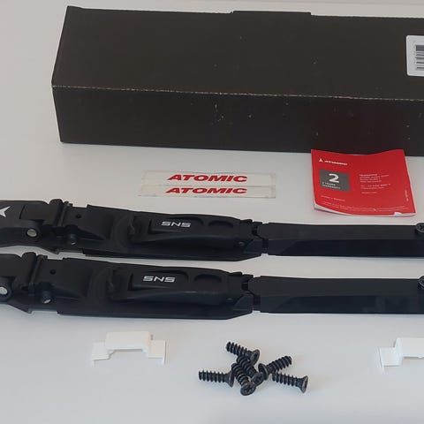 SNS kisasiteet luisteluhiihtoon. Ruuvit tallessa. Myös perinteisen siteet löytyy, niiden hinta 5eur