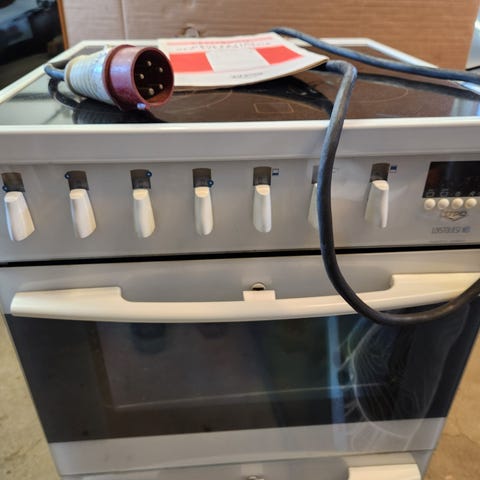 UPO EC135 keraaminen liesi, jossa on valkoiset säätönupit ja uuni. Liesi sisältää keraamisen keittotason ja uunin, jossa on ritilä ja 2 uunipeltiä. Soveltuu kotitalouskäyttöön.
