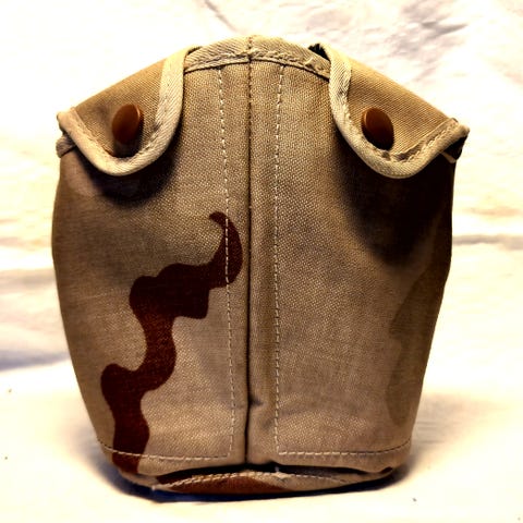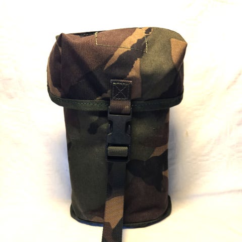 Brittiläinen PLCE kaasunaamarilaukku, DPM kuvio. Mitat saumasta saumaan: korkeus 23 cm, leveys 22 cm, syvyys 10 cm. Ulkopuolella yksi tarrasulkuinen tasku, 12x7x4 cm. Kannen alla elastiset lenkit, 2 kpl ja yksi tasku. Kannen reunassa hieman ommel irti, kts. kuva. Nouto Leppävedeltä, postikulut ostajalle tai toridiili. MMM.
