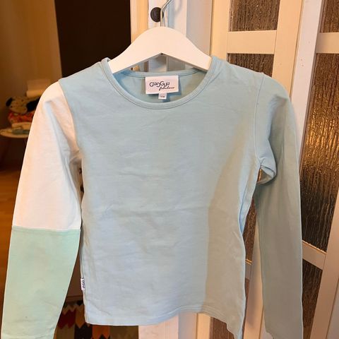 Myydään Gugguun t-paita, koko 116. Kapea malli, joten meillä ollut käytössä koossa 110, menisi varmasti jo 104 kokoiselle. Väri on hyvin vaalea minttu. Jotain sinisen ja vihreän väliltä. Paidan keskiosassa kaksi pientä tahraa, erottaa kun oikein tarkkaan syynää, mutta ei pistä silmään.