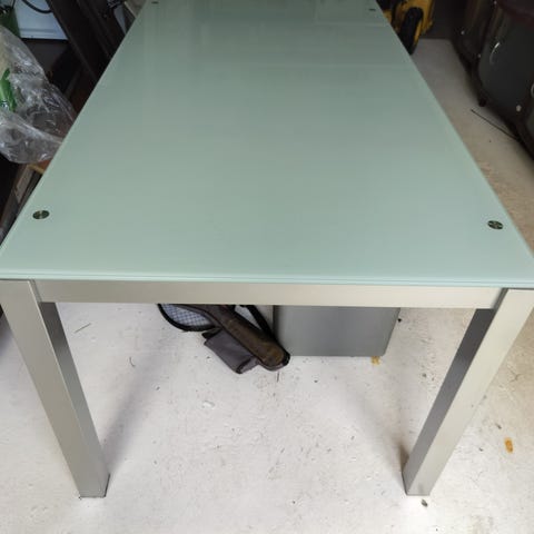 Pöytä on tukeva ja lasin käyttö lisää tukevuutta.