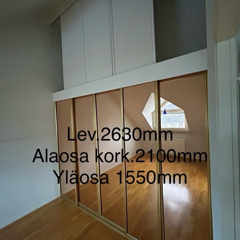 Liukuovikaapisto lev.2130mm kork. Alaosa 2100mm ja yläosa 1550mm