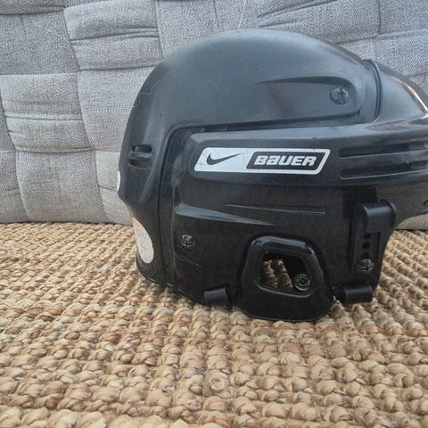Bauer Prodigy Youth -jääkiekkokypärä, nuorelle luistelijalle, Youth-koko, säädettävä 48-53,5cm. Kypärässä visiiriverkko kasvojen suojana. Ehjä, käytön jälkeä.