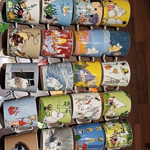 Myynnissä vuonna 2005 ilmestynyt harvinainen muumipeikko unelmoi muki. Muki on ollut vitriinissä koko ajan. Ei tarraa. Ei pakkomyynnissä, joten hinta tiukka.