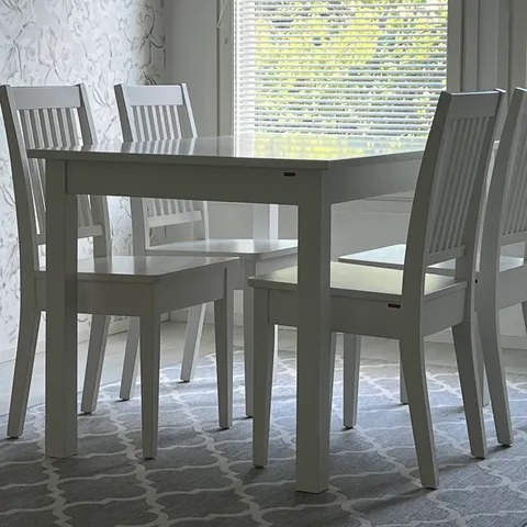 Puinen ruokapöytä ja tuolit setti vaalealla viimeistelyllä