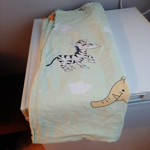 Lasten koon pussilakana ja vaalean sininen aluslakana