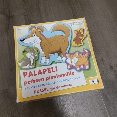Done by Deer Elefantti palapeli, laatikossa kaksi palapeliä. Laatikko ja palat ottaneet hieman osumaa, mutta hyvä kuntoinen vielä. Palat ovat isoja ja paksuja.