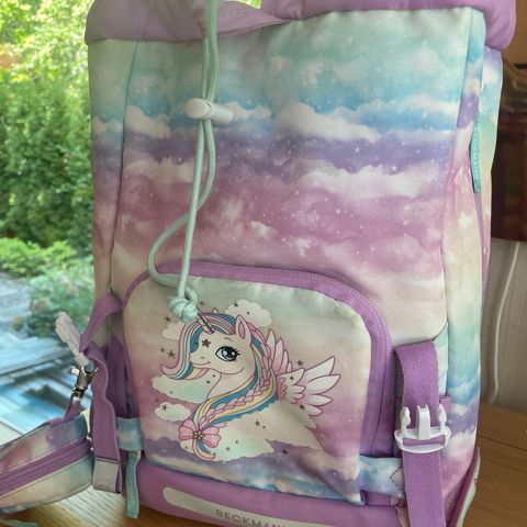 Oikeanpuoleinen reppu enemmän käytetty. Hieman käytönjälkiä, kuten esimerkiksi tahroja hihnoissa. Tähän reppuun saa etutaskusta käännettyä yksisarvisen kuvan. Repussa valo, jonka patterin saa vaihdettua. Vetoketjut toimii moitteetta. Hinta 15e.