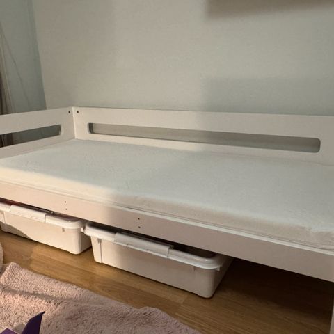 Vuode on matala ja sopii hyvin pienelle lapselle itsenäiseen ja turvalliseen nukkumiseen.