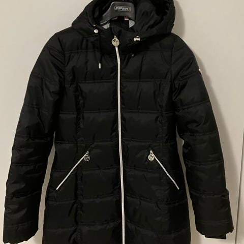 Hyväkuntoinen naisten talvitakki kokoa S. Takin sisäsaumoja korjattu n. 8cm matkalta kankaan takerruttua sisävaatteeseen. Muuten erinomainen kunto.
