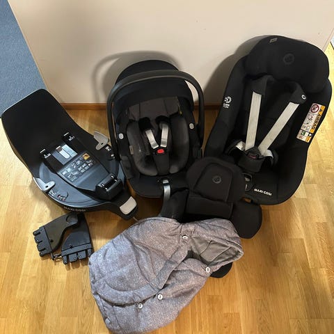 Ostan Maxi-Cosi "Plaza" rattaisiin turvakaaren. Kiinnitys on "piikki-mallinen" ja irtoaa napista painamalla. Värillä ei niin väliä