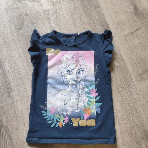 Myydään settinä kaksi tyttöjen paitaa. Molemmat kokoa 110. Frozen-paita on Name it -merkkinen ja sydänpaita Lindex. Ehjät ja tahrattomat paidat.