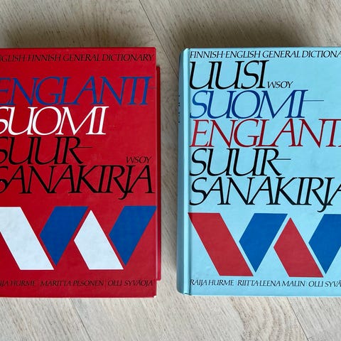 Suomi Englanti Suomi ja Suomi Ruotsi Suomi sanakirjat. Kaksi erillistä kirjaa, joissa on käännökset suomen ja englannin sekä suomen ja ruotsin kielten välillä. Kirjat ovat kovakantisina ja sopivat kielen opiskeluun tai käännöstyöhön.