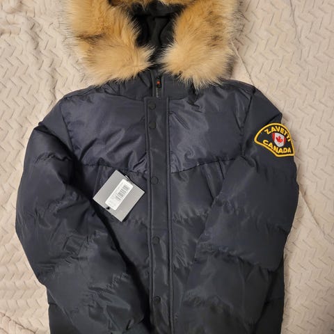 Vuoden käytössä ollut, muuten kuin uusi, mutta vasemmassa taskussa reikä sisällä.