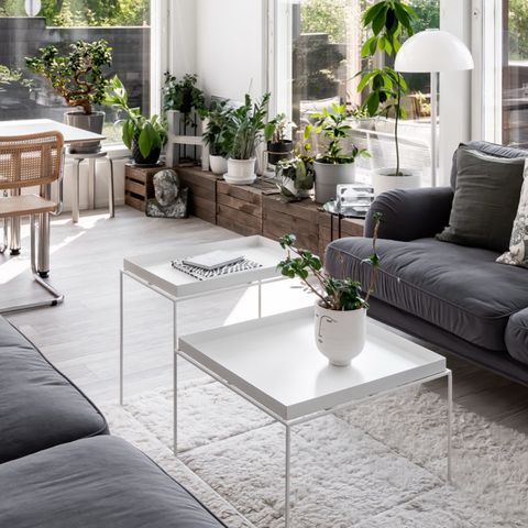 Hayn metallinen Tray Table L-koossa. Lisätietoja: https://www.hay.nl/en/tray-table-l-l40-x-w60-white#visit-store-product-detail.