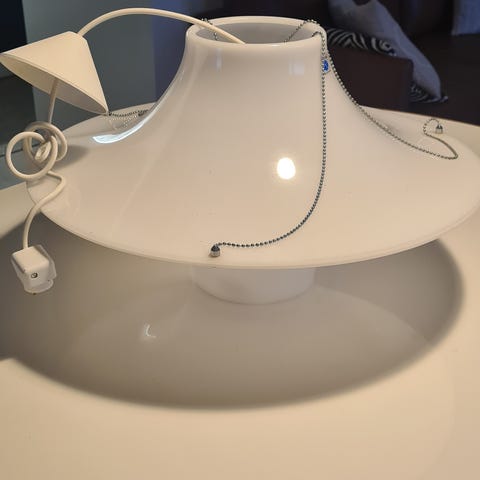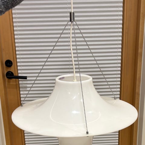 Kotimainen klassikko Yki Nummen suunnittelema 70cm Lokki valaisin. Valaisin antaa sekä suoraa että epäsuoraa valoa ja on häikäisemätön levittäen valoa pehmeästi tilaan. Sopii erinomaisesti keittiön pöydän päälle tai olohuoneeseen.