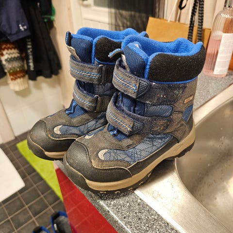 Toppakenkä, toppasaapikas, musta alaosa vedenpitävää kumia. Ehjät, siistit talven lumi-ja loskakeleihin.
