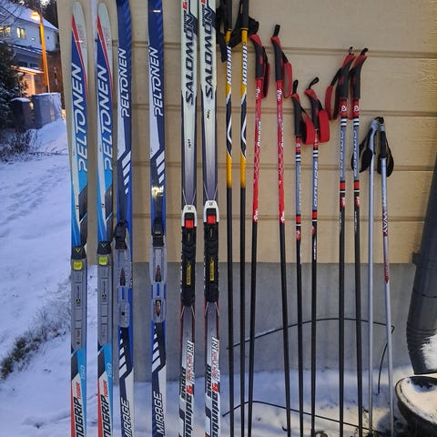 Sukset 150cm, sauvat 120 cm