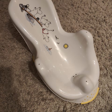 Vauvalle kylpyammeeseen kylpytuki, Muumi-merkkinen ja Muumien kuvalla varustettu. Siisti ja ehjä.