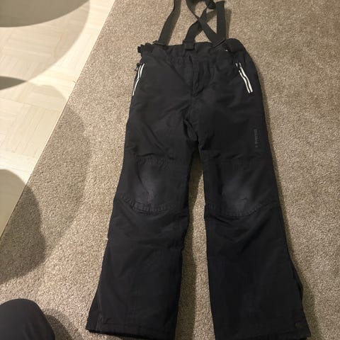 Lasten lasketteluhousut / toppahousut, koko 140 ja merkki Everest. Irrotettavat henkselit, tarralla säädettävä vyötärön leveys ja lahkeissa lumilukot.