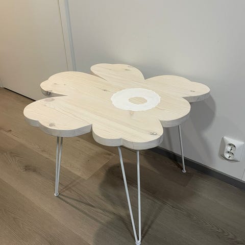 Pöydän mitta 120 cm ja korkeus 51 cm.