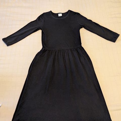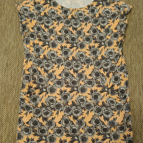 Mellin tunika, kokoa M. Puolipitkät hihat, hihan pituus 37 cm. Tunikan pituus 75 cm, leveys kainalosta kainaloon 47 cm.