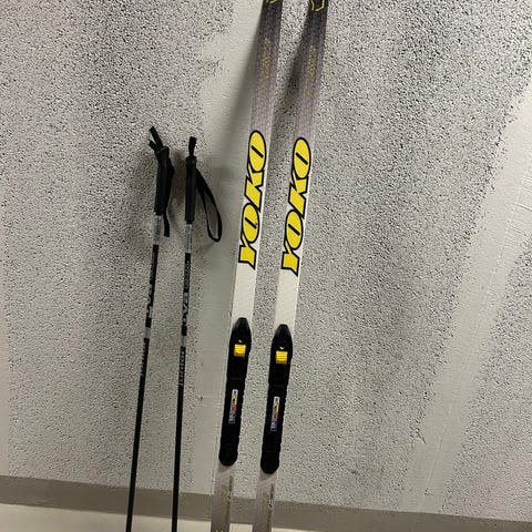 Vähän käytetty Yoko Lastensuksi-setti. 100 cm pitkät sukset + muovisiteet. Pieni pala lähtenyt takaosasta (näkyy kuvassa)