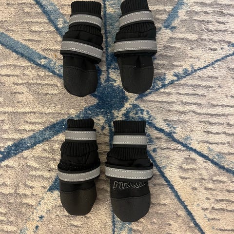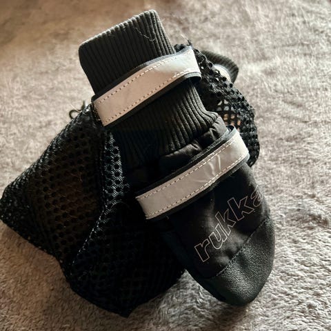 Vain sovitetut rukka toppa tossut, olivat omalle koiralle väärän kokoiset.