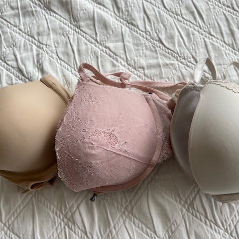 Ovat olleet pari vuotta kaapissa, ja rintojen muoto on muuttunut lapsen syntymän jälkeen, joten eivät enää sovi.