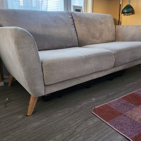 Jysk sohva vaaleanharmaa kangas